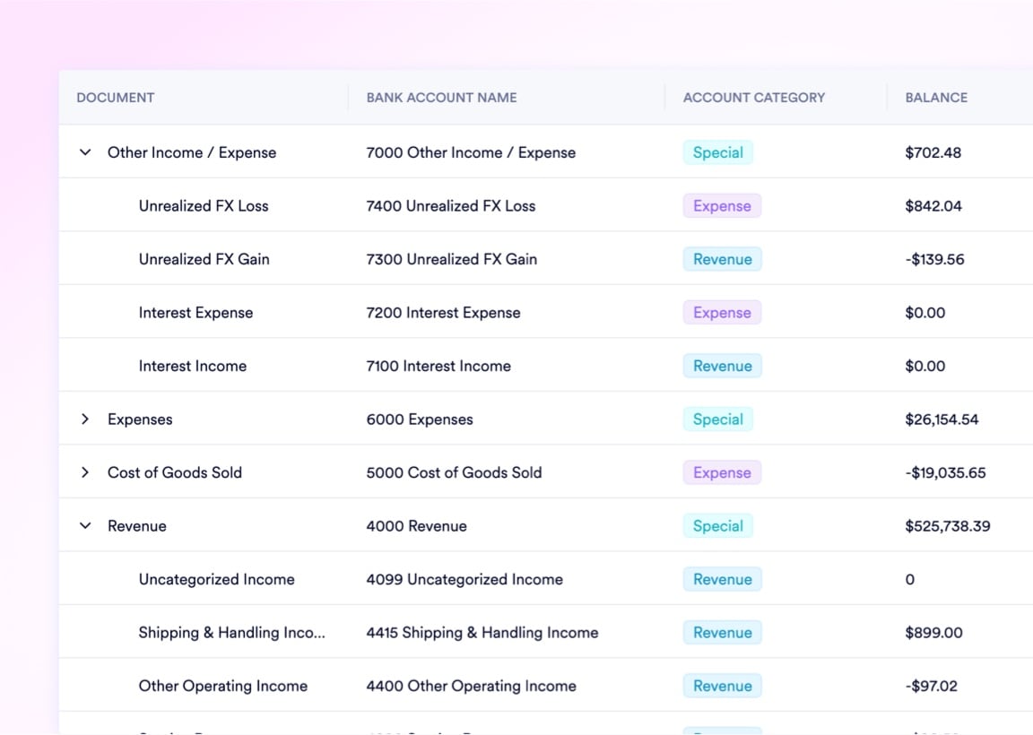 Group expenses hierarchically instead of creating hundreds of redundant accounts. Expand and collapse parent-child relationships with a click to focus on what matters.