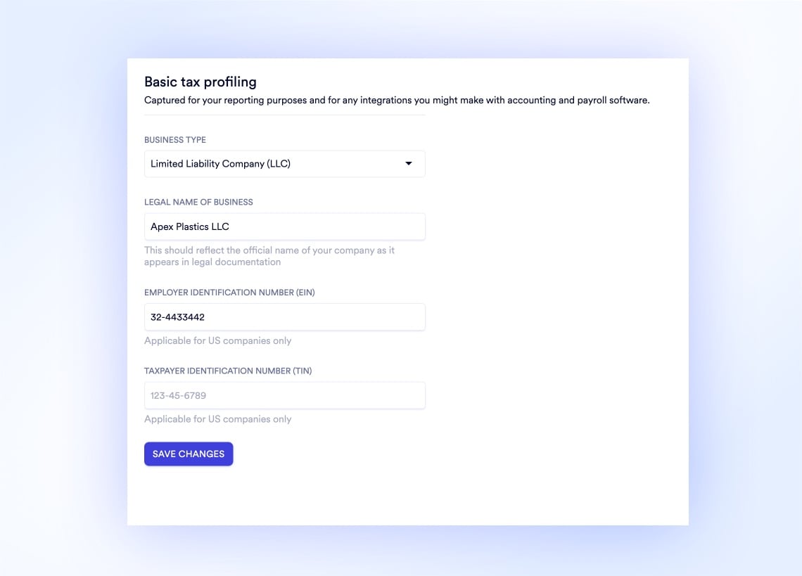 Store your exact legal entity name, Employer Identification Number, and Taxpayer IDs securely in one place. Naologic automatically populates this critical data into compliance reports, customs declarations, and shipping manifests. No more digging through filing cabinets when the auditor calls.