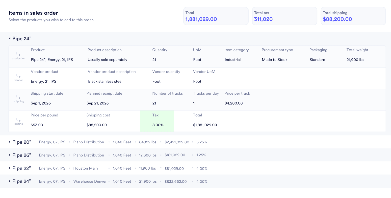 QuickBooks forces you to manually maintain flat rate tables that break the moment you sell across county lines. Legacy ERPs like SAP require six-figure custom development projects just to handle a compound tax rule or B2B resale exemption, and others completely ignore the topic in their system. Naologic ships with a fully configurable tax engine and native Avalara integration out of the box.