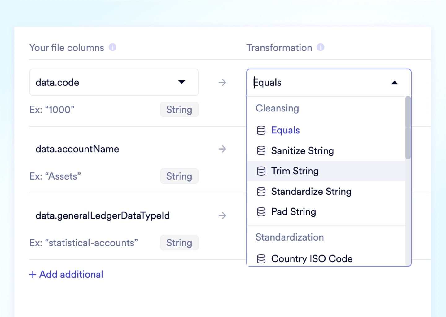 Run "Capitalize all text," "Remove special characters," or date-format normalization on any source column during the import - applied before the data ever touches the destination schema.