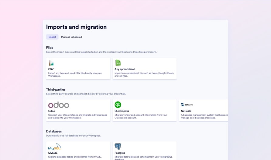 Ingest complex CSV, Excel, MySQL, and PostgreSQL datasets using a 3-dimensional transformation flow with live pre-import error preview - catch schema mismatches before a single record commits.