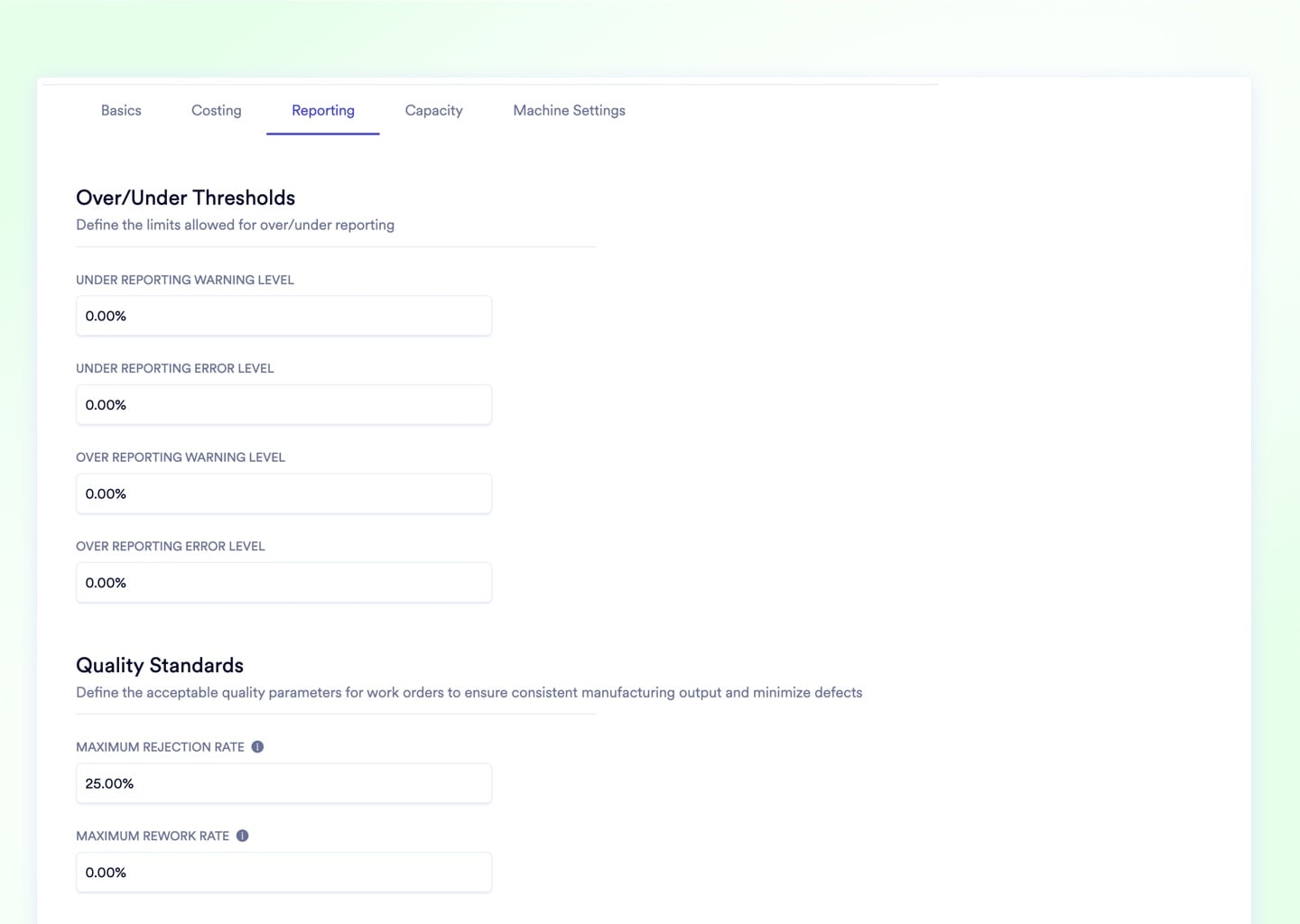 Work Center Quality Thresholds