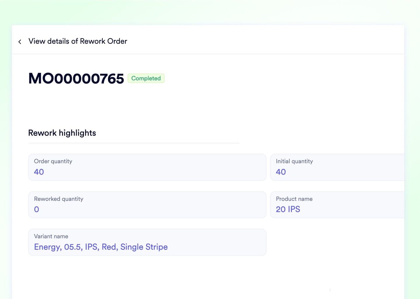 When parts fail QA, generate dedicated Rework Orders to route defective goods back through the factory. Every re-run captures supplementary labor and machine hours under Cost of Poor Quality - giving management the exact financial cost of each defect escape.