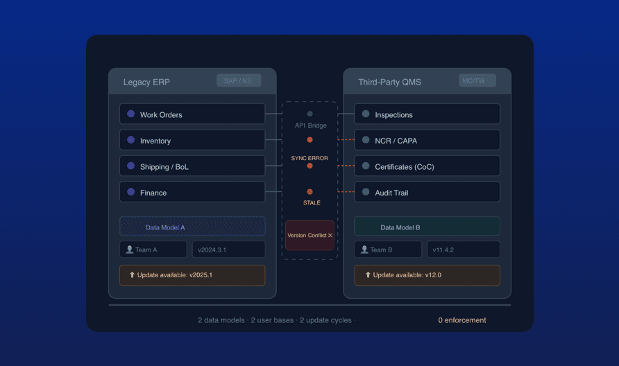 Every quality tool in Naologic is operationally binding - not advisory. From work center scrap thresholds to chemical-grade resin validation, enforcement is native and automatic.