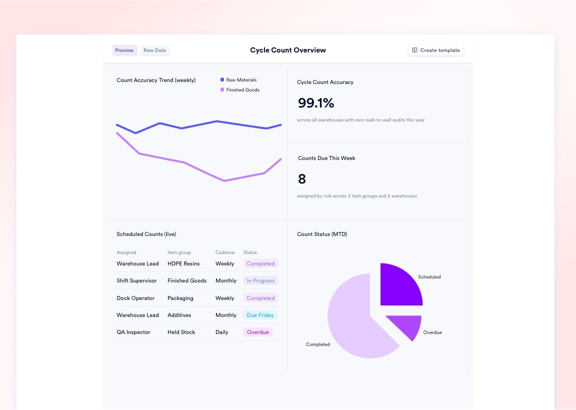 CFOs need financial valuations tied to GL accounts. Controllers need period-close reconciliation reports. Supply chain VPs need location-level stock maps. Warehouse managers need scan logs and count accuracy. Naologic serves all four from the same data - no duplication, no conflicting figures, no "whose number is right?" debate at month-end.