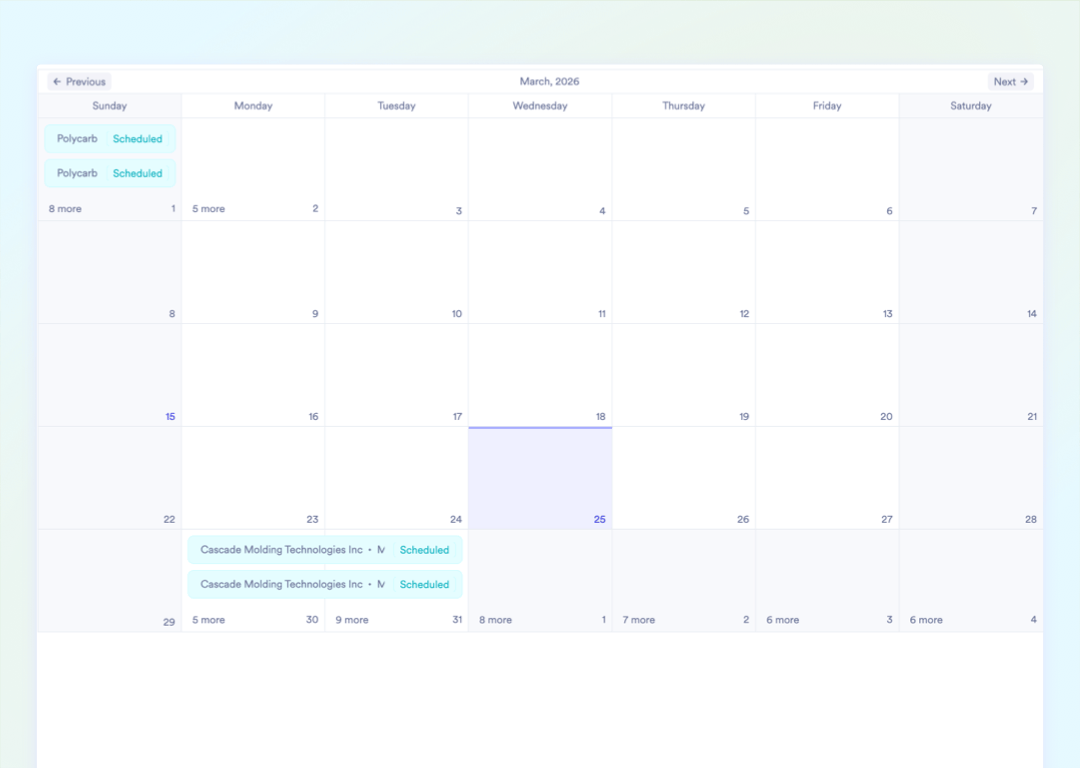 Every staggered delivery under a blanket order carries its own bill of lading, tracking status, and invoice link. View the entire lifecycle from scheduled to delivered on a visual status flow. Anticipate dock bottlenecks with the shipping forecast calendar that maps past, present, and future dispatches. Drag and drop shipments to smooth out overloaded days before the chaos hits.