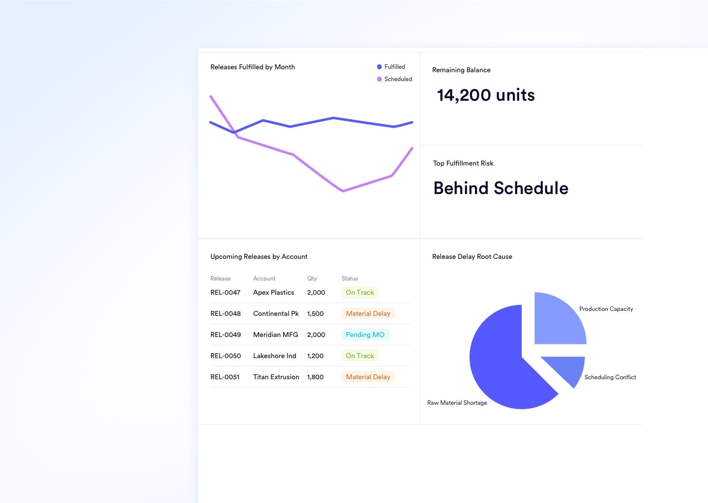 Long-term contracts drive revenue predictability, but only if your fulfillment and procurement systems keep pace. Most manufacturers lose margin to over-purchasing, missed releases, and manual balance tracking that breaks down at scale.