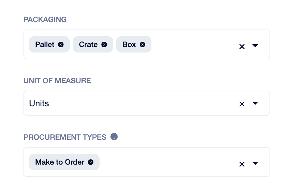 Create packing types with unit definitions
