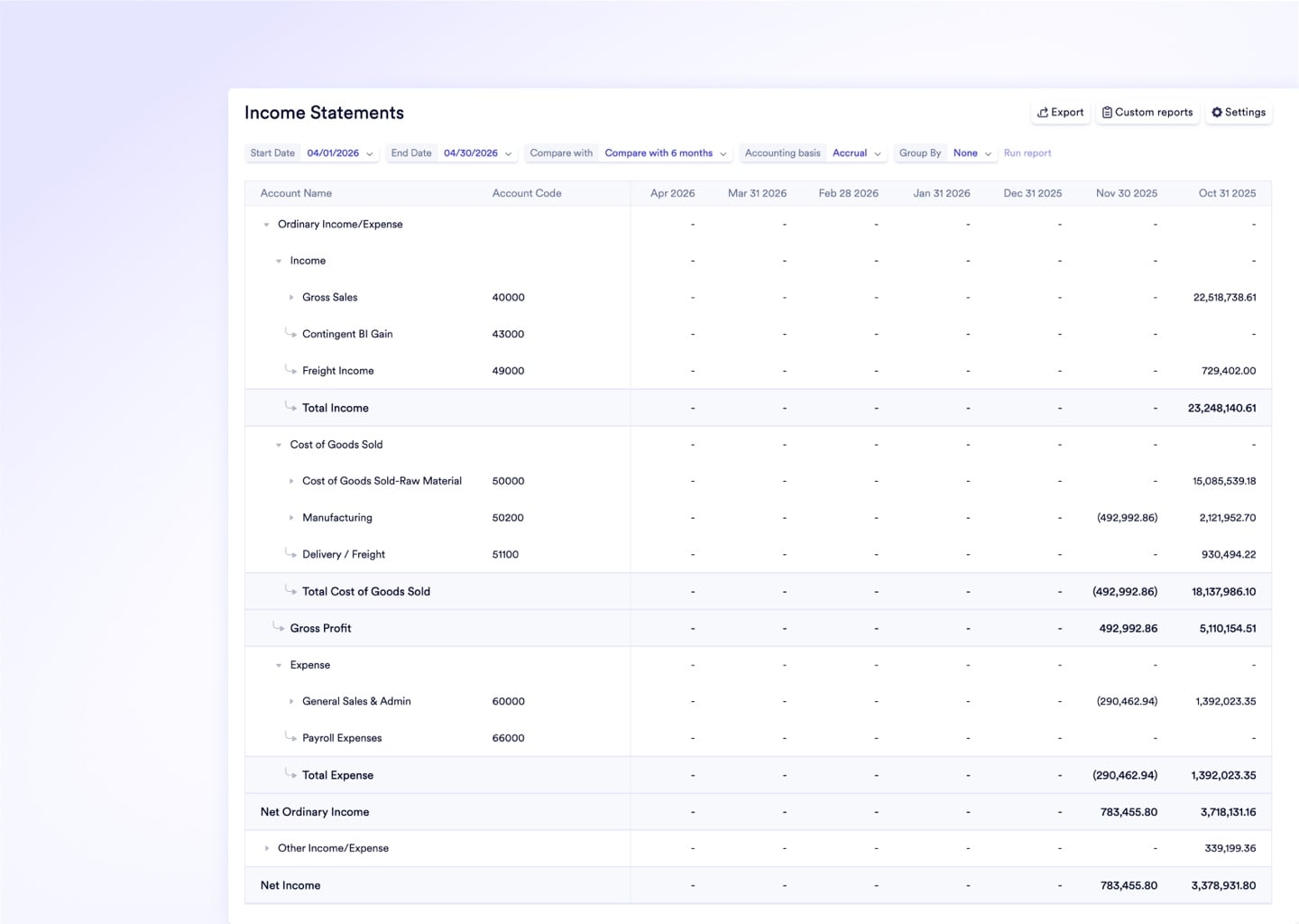 Explore the Platform ›Live Financial Truth from the First Work Order Income statements, cash flow, and consolidated GL balances update continuously as production executes - giving the CEO a real-time view of true unit economics without waiting for month-end close.